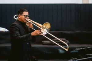 O jovem músico Tales Caique, de 19 anos, com toda a responsabilidade de maestro, conduzia a banda, harmonizando sentimentos de paz, amor e esperança. Não só com seu som, mas também pelo seu papel social na vida dos jovens que compõem a banda. “Comecei a estudar música aos 12 anos e nunca pensei em ser maestro. Sou o exemplo vivo de que a música transforma as pessoas”, revelou Tales.