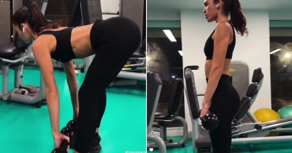 Bruna Marquezine, de 30 anos de idade, encontrou aquela brecha na agenda de compromissos e não deixou de lado o treino na academia, na noite dessa segunda-feira (2). A atriz, que estava com um look de calça e top pretos e colados, deixou parte do abdômen sarado à mostra enquanto se exercitava. Sob os olhares atentos do seu personal trainer, o colunista de Quem e o queridinho entre muitos famosos, Chico Salgado, de 43 anos, a atriz ainda chamou a atenção pela elasticidade durante o treino.No fim de fevereiro, depois de passar o Réveillon no Brasil com o namorado, o cantor canadense Shawn Mendes, de 27 anos, e relaxar por uns dias na mansão que o artista tem em Los Angeles, na Califórnia (EUA), ela já havia aparecido se exercitando com Salgado.Na ocasião, bem-humorada, a atriz mostrou que também estava retomando as atividades físicas e, como muita gente, ‘correndo atrás do prejuízo’ depois dos dias de folia do Carnaval. Chico foi cobrado por uma seguidora para deixá-la com um corpo igual ao da atriz. “Cara, outra pessoa querendo o corpo da Bruna, não consigo deixar… Essa aqui eu consegui, é a Ana. Oie, Ana! Tudo bem?”, brincou o personal. “Ela queria o corpo da Bruna…”, começou Chico. “De antes do Carnaval”, completou a atriz. “A gente está chegando lá”, brincaram os dois na sequência. “Galera, para de se comparar com as pessoas. É ou não é, Bruna?”, orientou Chico, e a atriz concordou.Assista aos vídeos clicando abaixo: Bruna Marquezine exibe elasticidade e shape em treino noturnoBruna MarquezineReprodução/InstagramBruna MarquezineReprodução/Instagram