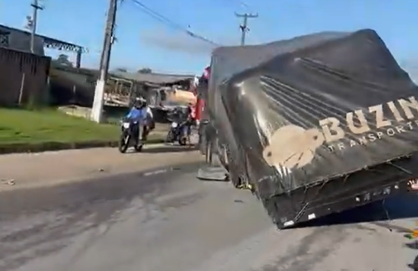 Segundo informações, a parte traseira da carreta cedeu, deixando a carroceria praticamente colada ao chão. O veículo seguia no sentido Serraria quando apresentou o problema mecânico. Com o bloqueio parcial da pista, motoristas passaram a trafegar pela contramão para tentar seguir caminho, aumentando o risco de acidentes.