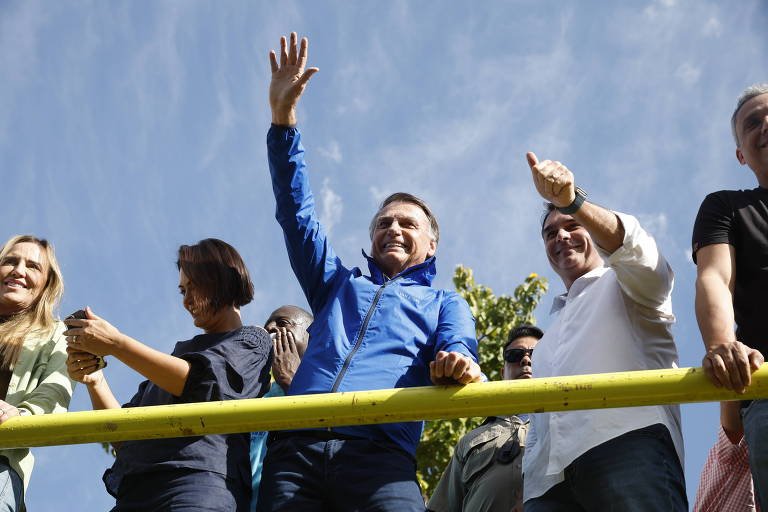 Em cima do trio elétrico, Bolsonaro foi acompanhado por aliados políticos como o filho Flávio Bolsonaro, a vice-governadora do Distrito Federal, Celina Leão, e a ex-primeira-dama Michelle Bolsonaro.