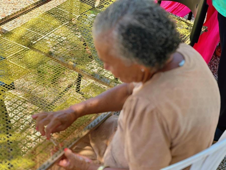 “Nossa cooperativa tem 21 anos. Inicialmente, era mista. Hoje, reúne apenas mulheres. Avançamos muito e já temos até uma sede. Nós criamos uma escala de trabalho, vendemos tudo o que é produzido aqui na cooperativa e também exportamos. A nossa base é o filé, mas temos também o tenerife, o macramê e outros produtos”, relata Lindinalva, que preside a Coorperartban.