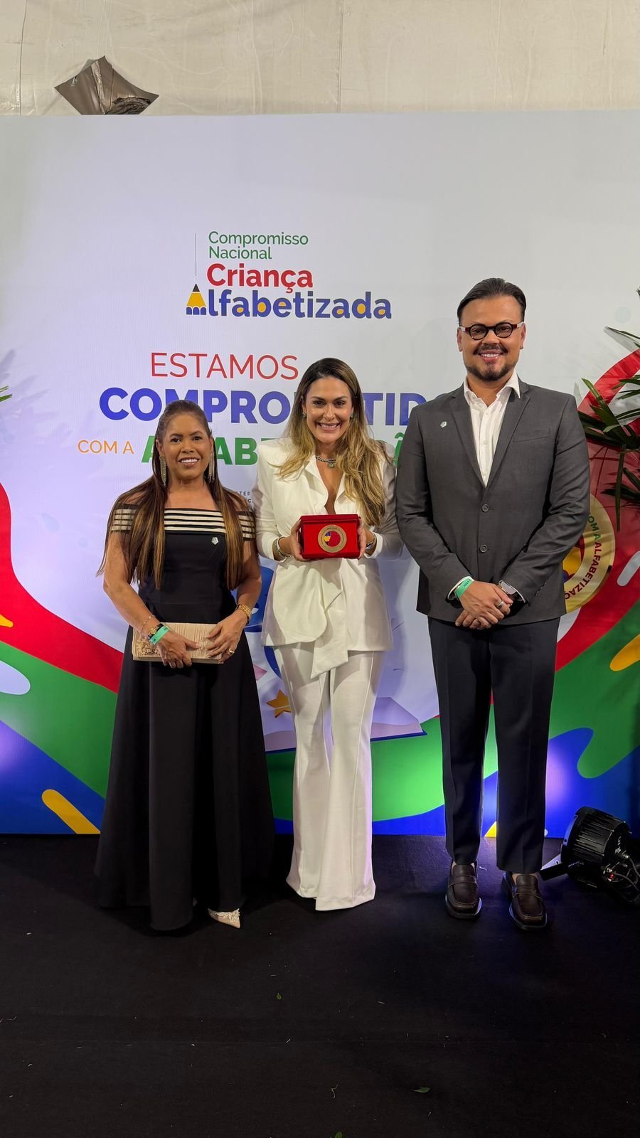 São José da Laje, no segundo ano consecutivo, na 2ª edição do Selo Ouro de Alfabetização, participa da Cerimônia de homenagem aos estados e municípios por terem cumprido todos os critérios de avaliação e, em mais um ano, ter se credenciado em seu Selo Ouro. Estiverem presentes na solenidade a prefeita Angela Vanessa, a Secretária da Educação Glaudes Souza, o Secretário de Relações Institucionais Neno da Laje e o pesquisador Dr. Ricardo Jorge.