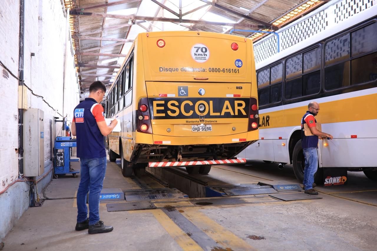 A vistoria é realizada a cada seis meses, conforme as normas vigentes, e é indispensável para a liberação dos ônibus para circulação, assegurando que todos estejam aptos a transportar os estudantes com segurança e conforto.