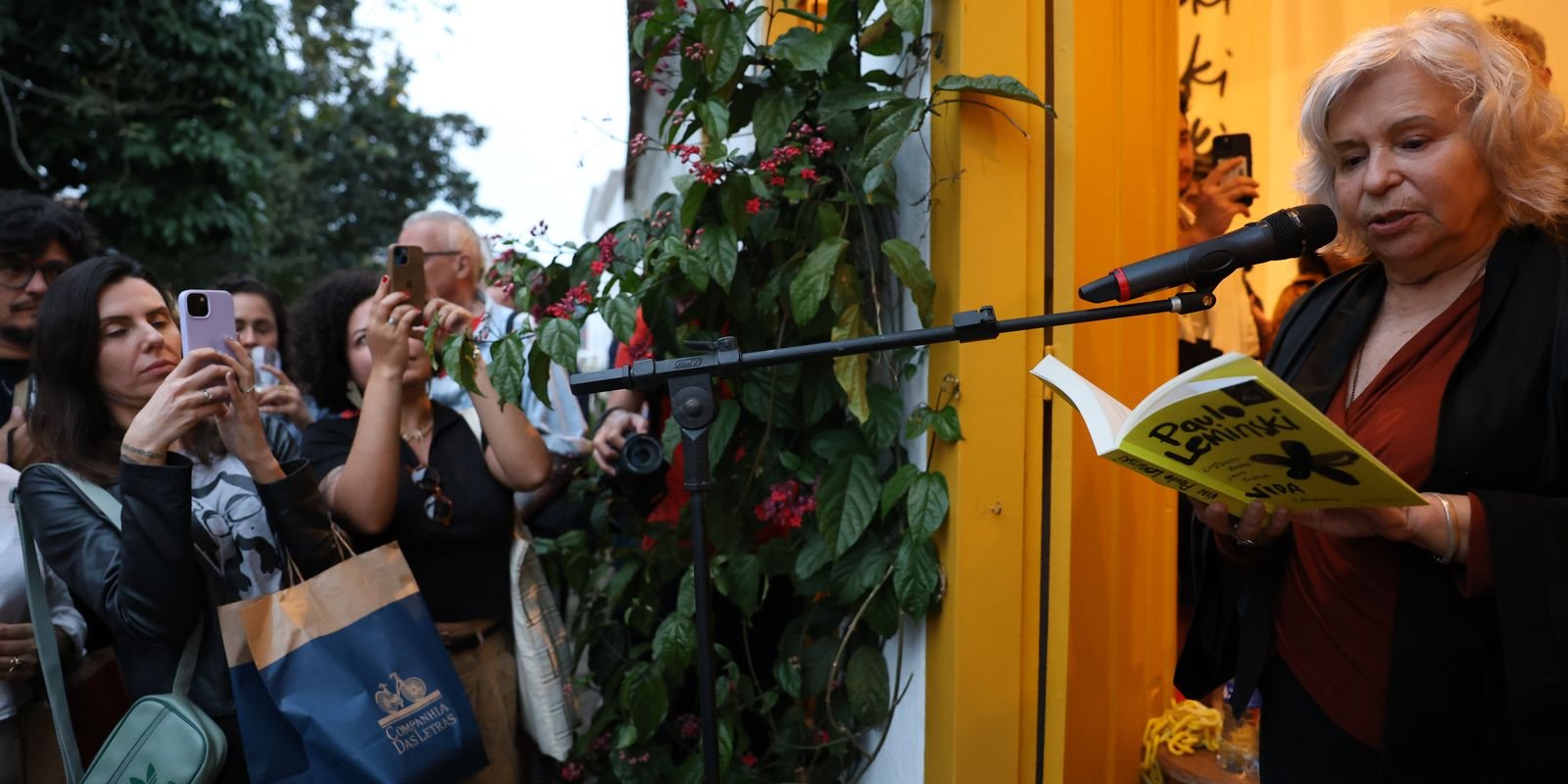 Sentada na plateia da Casa Flip+Motiva, Áurea se emocionou durante a leitura do conto Do lado de cá da fronteira, lido por sua autora, a professora gaúcha Carolina Panta, que aborda a perda do pai e constrói uma travessia emocional conduzida por um carro antigo e uma estrada silenciosa, com inspiração na obra de Leminski.
