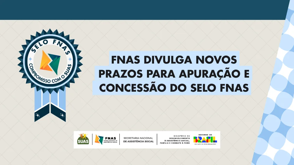 O Fundo Nacional de Assistência Social (FNAS) divulga novos prazos para apuração e concessão do Selo FNAS – Compromisso com o SUAS, Proteção para Nossa Gente.