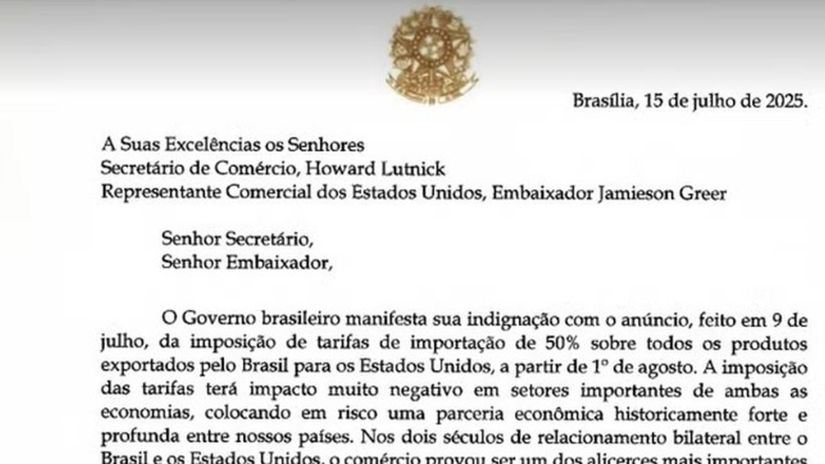 “A imposição das tarifas terá impacto muito negativo em setores importantes de ambas as economias, colocando em risco uma parceria econômica historicamente forte e profunda entre nossos países”, diz a carta oficial.