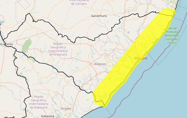 O Instituto Nacional de Meteorologia (INMET) publicou nesta segunda-feira (19) um alerta de acumulado de chuva para áreas do Leste de Alagoas, Mata Pernambucana e Leste Sergipano. O aviso é classificado como de “perigo potencial” e vale até às 10h da manhã de terça-feira (20).