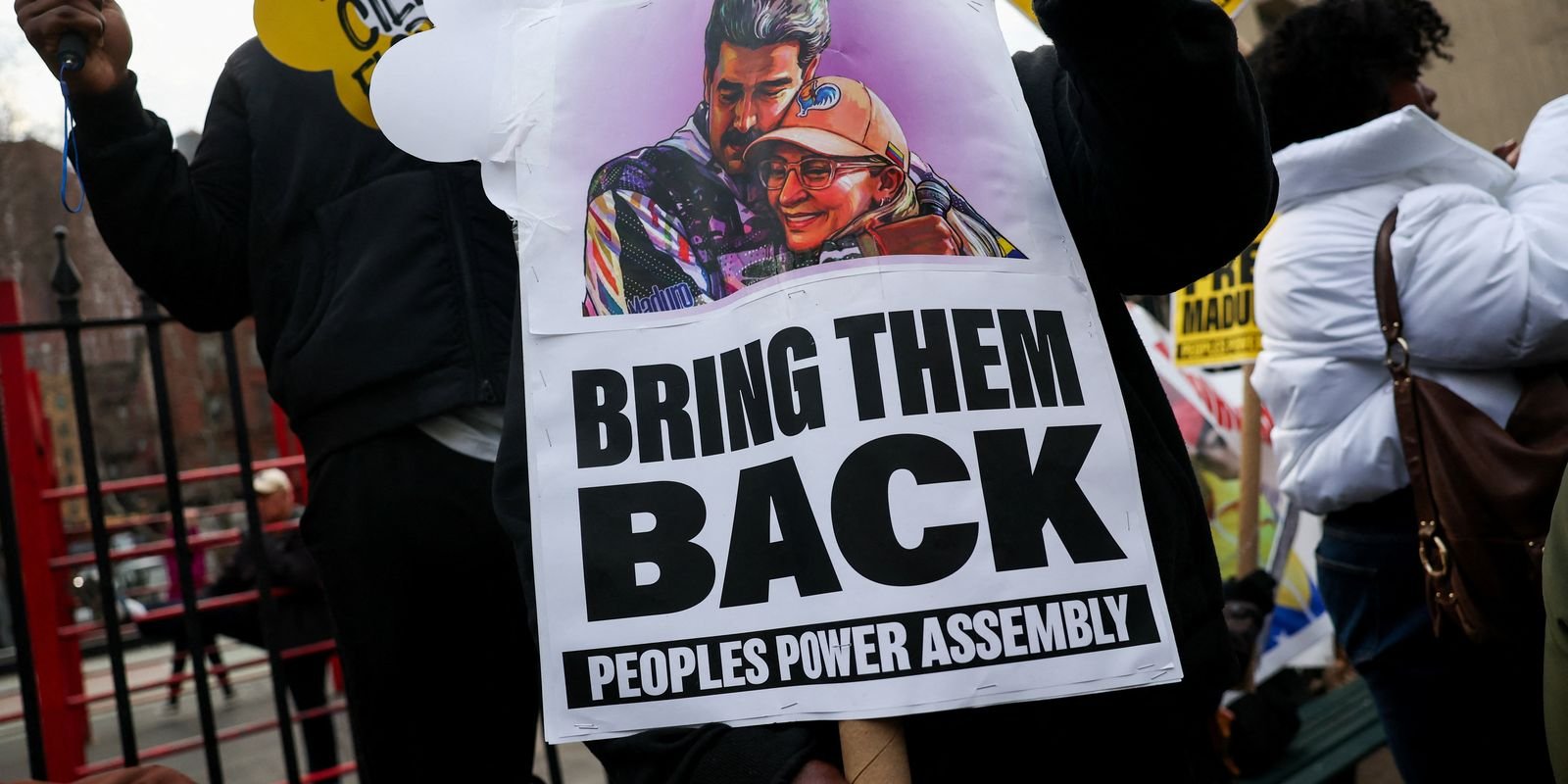Ele e a esposa seguem presos em Nova York, quando foram presos durante uma operação das forças militares dos EUA na Venezuela em janeiro. Do lado de fora, manifestantes pediam a libertação de Maduro.