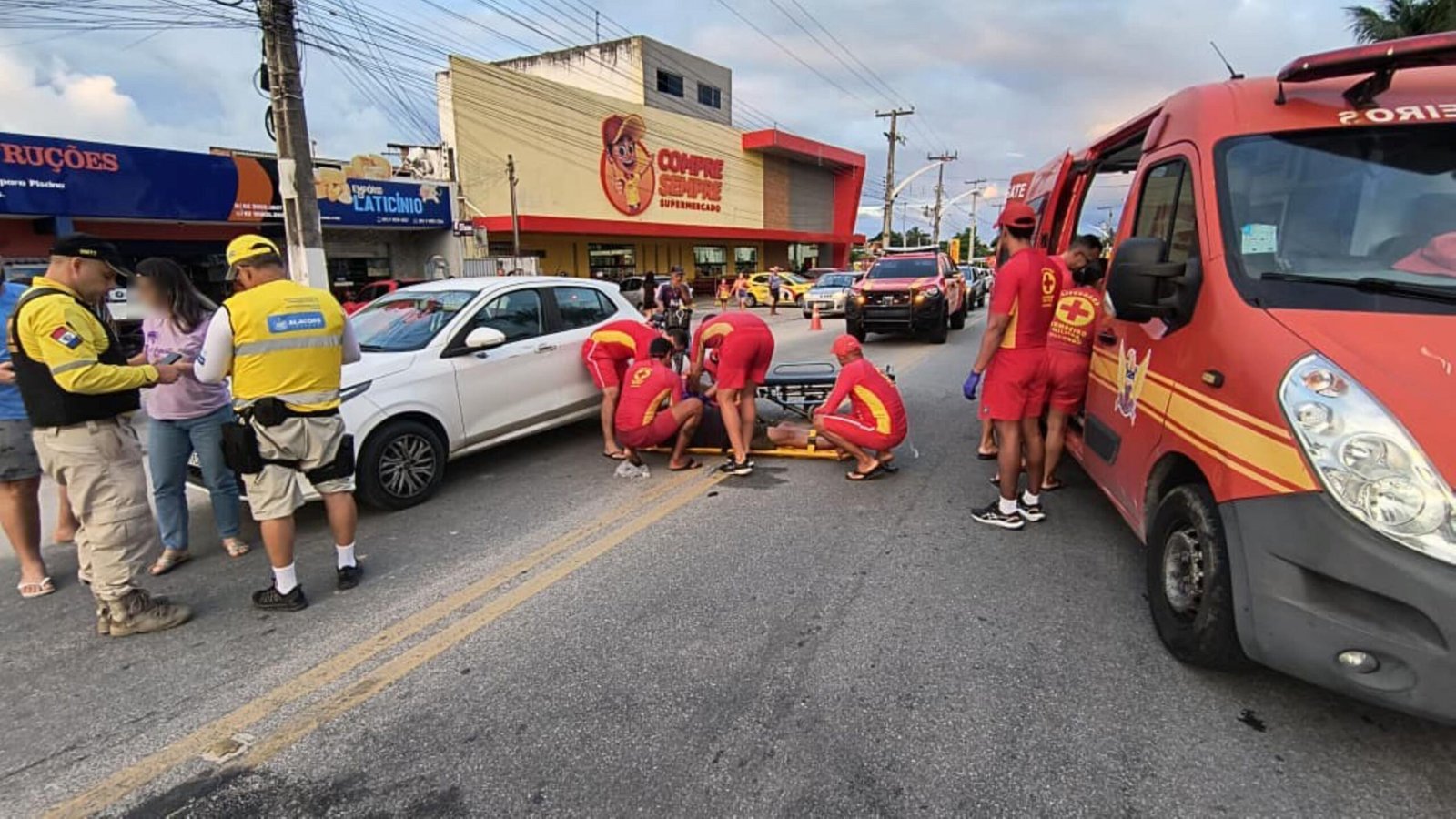 Durante o patrulhamento de rotina, a equipe presenciou o acidente. De imediato, os agentes isolaram a área e prestaram os primeiros atendimentos, acionando o Corpo de Bombeiros, já que o motociclista se encontrava ferido e caído ao solo. A SMTT de Marechal Deodoro também foi chamada para dar suporte à ocorrência.