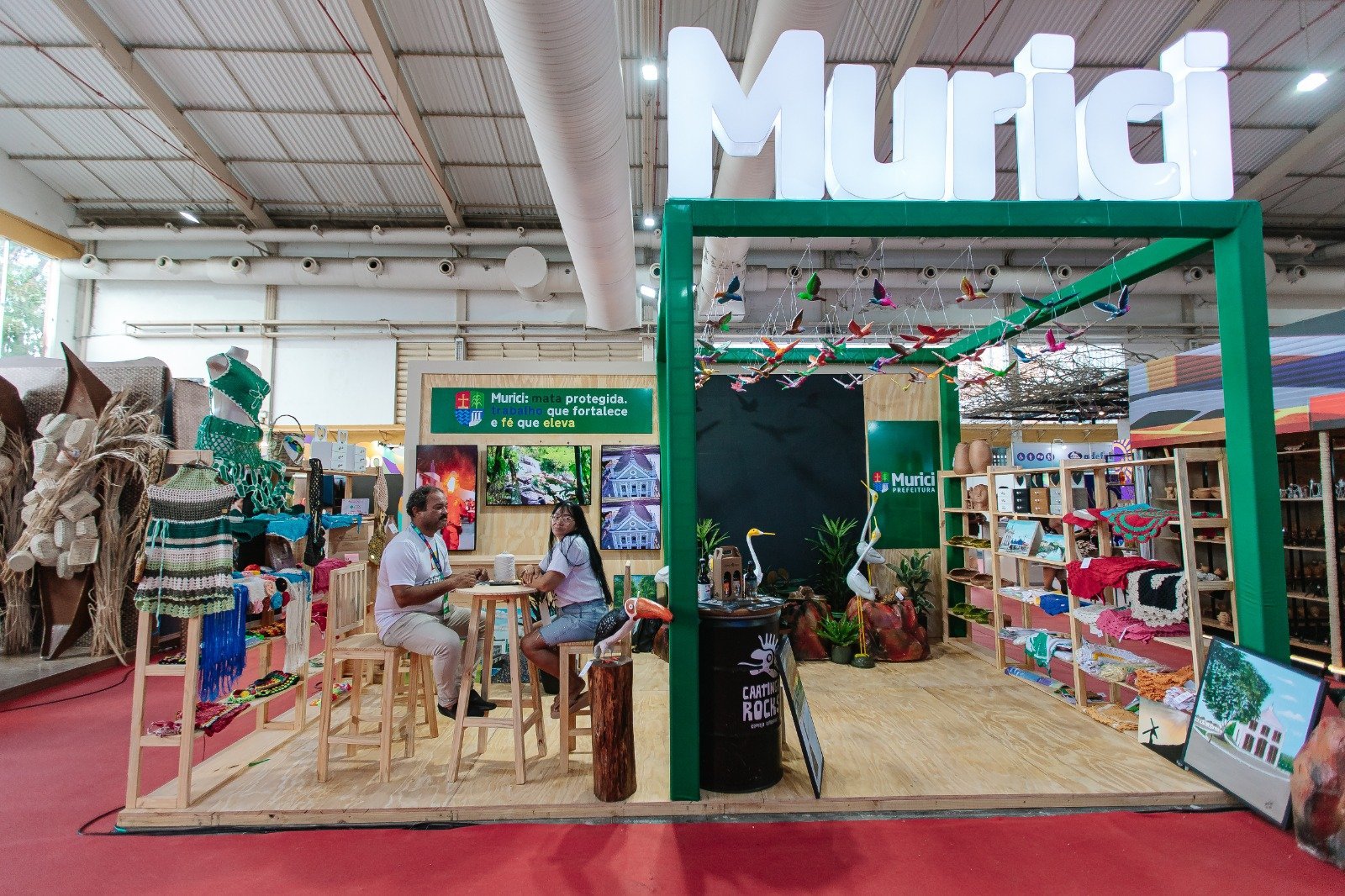 No estande de Murici, localizado nos números 81 e 82, cada detalhe foi pensado para aproximar os visitantes das principais riquezas da cidade. Durante os dias de programação, o público poderá conhecer as riquezas naturais de Murici, como a Cachoeira da Tiririca, o Vale do Socorró e o Alto do Cruzeiro. Também estarão em evidência o empreendedorismo local, com expositor da cervejaria Caatinga Rocks. Além disso, os visitantes terão a oportunidade de adquirir artigos produzidos por artesãos muricienses, incluindo peças confeccionadas em plástico reciclado, argila, tecido e pintura em tela.