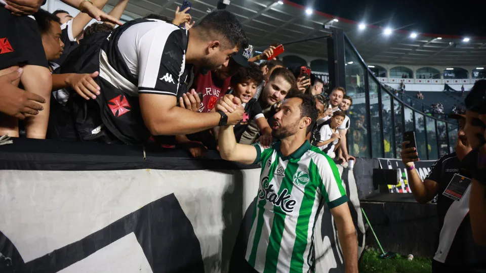 Depois do apito final, mesmo com a derrota no campo, torcedores do Vasco tietaram Nenê. Um deles ganhou a camisa do número 10 do Juventude.