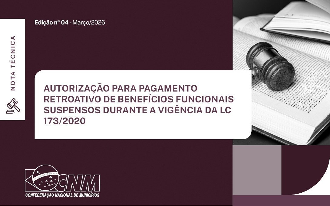 A Confederação Nacional de Municípios (CNM) disponibilizou nesta quinta-feira, 12 de março, Nota Técnica 4/2026, que visa orientar os gestores municipais quanto à aplicação da Lei Complementar 226/2026. A medida dispõe sobre a possibilidade de pagamento retroativo de direitos e vantagens funcionais suspensos em decorrência das restrições impostas pela Lei Complementar (LC) 173/2020, durante o período de enfrentamento à pandemia da Covid-19.