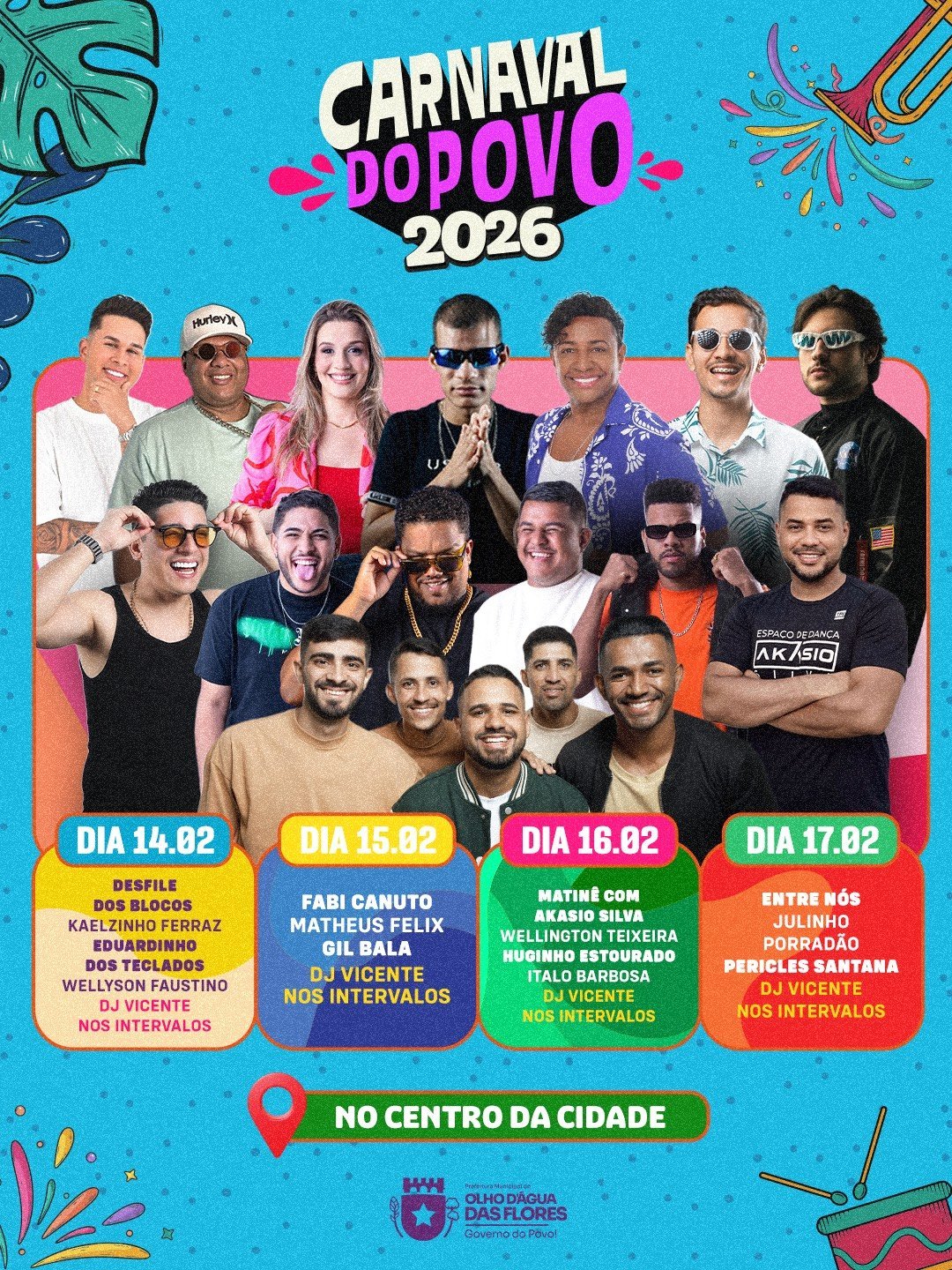 A Prefeitura de Olho d’Água das Flores anuncia a realização do Carnaval do Povo 2026, que este ano traz uma novidade importante: a festa acontecerá no centro da cidade, facilitando o acesso do público, fortalecendo o comércio local e garantindo mais integração entre moradores e visitantes.
