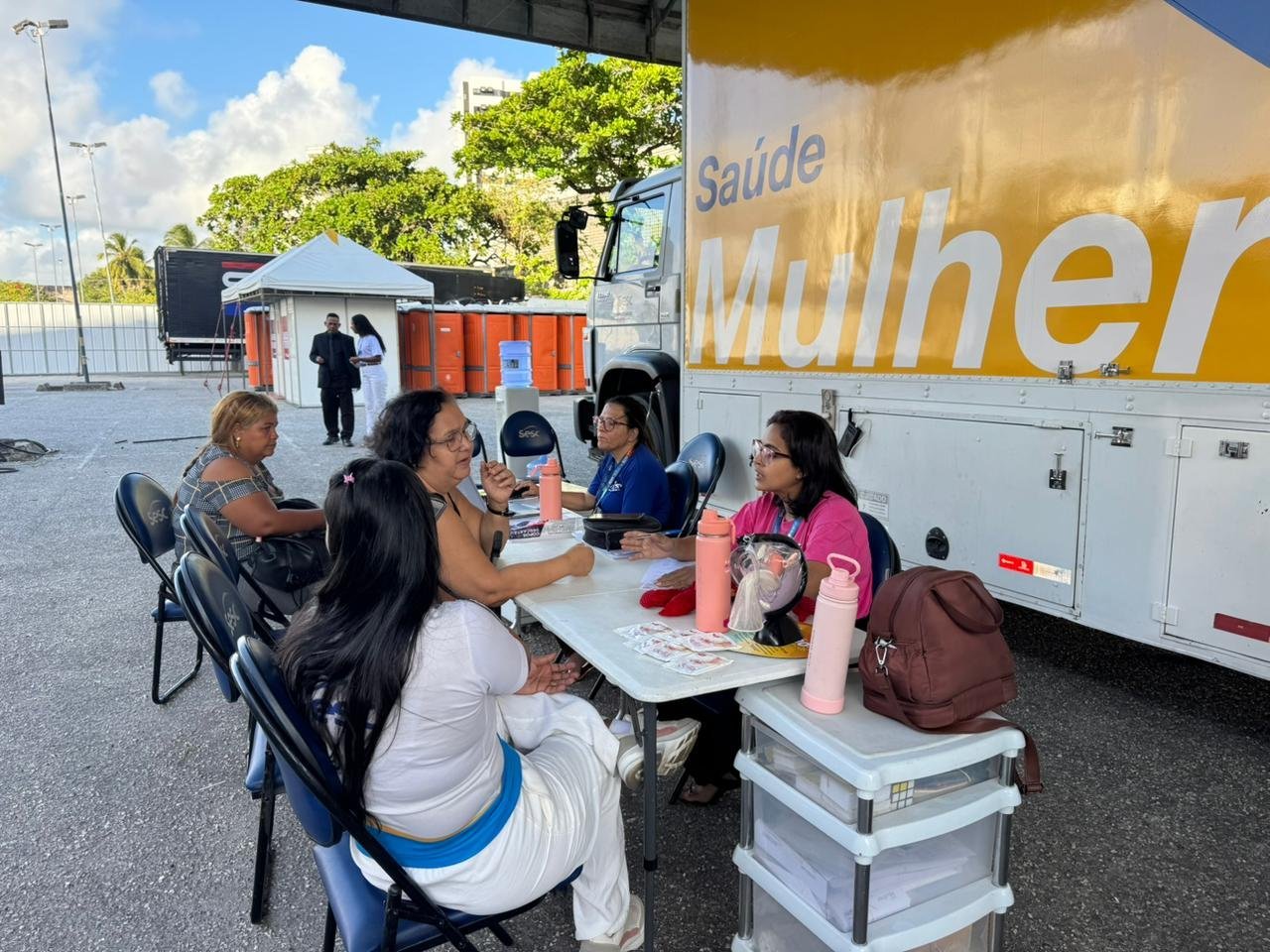 Já unidade Sesc Saúde Mulher ofertou exames de citologia e mamografia. Segundo a analista em saúde Aline Sampaio, a procura foi intensa, especialmente de mulheres que estavam há anos sem realizar os exames.