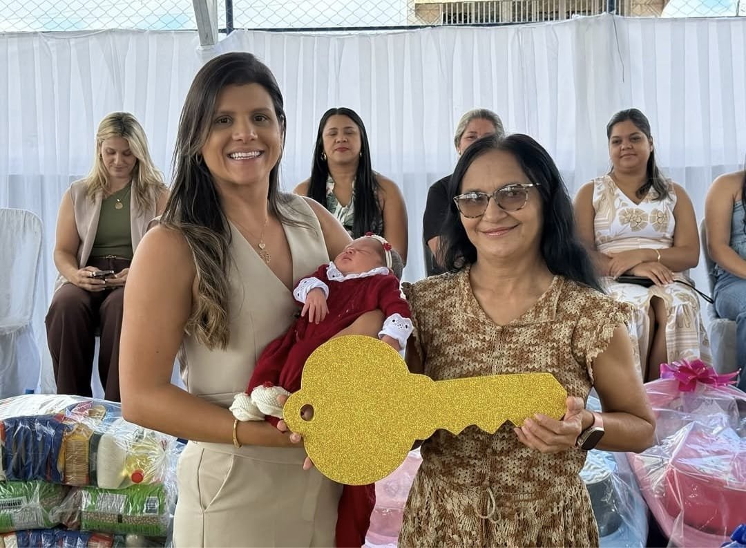 Durante o evento foram entregues kits de enxoval para futuras mamães, além de cestas nutricionais, para garantir o reforço alimentar e uma gestação tranquila. A prefeita Marcela Gomes também entregou a chave do município para o [a] Bebê Prefeito [a], uma condição simbólica outorgada à primeira criança nascida na cidade durante as comemorações da Semana do Bebê.