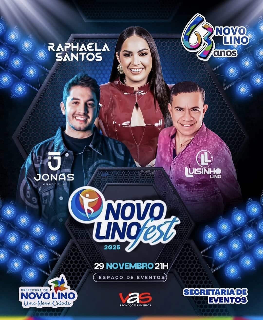 Os shows acontecem no Espaço de Eventos do município. A programação completa da festa dos 63 anos de emancipação política de Novo Lino será divulgada em breve pela gestão municipal.