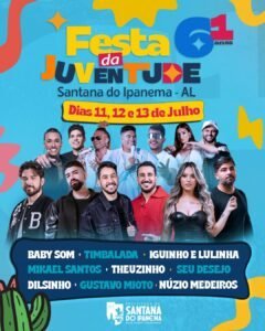 O prefeito de Santana do Ipanema, Eduardo Bulhões, divulgou nesta sexta-feira (13) a programação oficial da 61ª Festa da Juventude, durante entrevista à Rádio Correio do Sertão. A festa, que acontecerá nos dias 11, 12 e 13 de julho, promete agradar a todos os públicos com atrações que vão do pagode ao sertanejo, passando por forró, axé e arrocha.