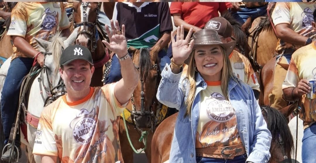 O prefeito Jorge Galvão ao lado da primeira-dama Jeane Moura [ex-prefeita do município de Senador Rui Palmeira] comandou neste domingo, 26, a 10ª Cavalgada da Amizade, um dos eventos mais tradicionais da cidade de Jundiá.