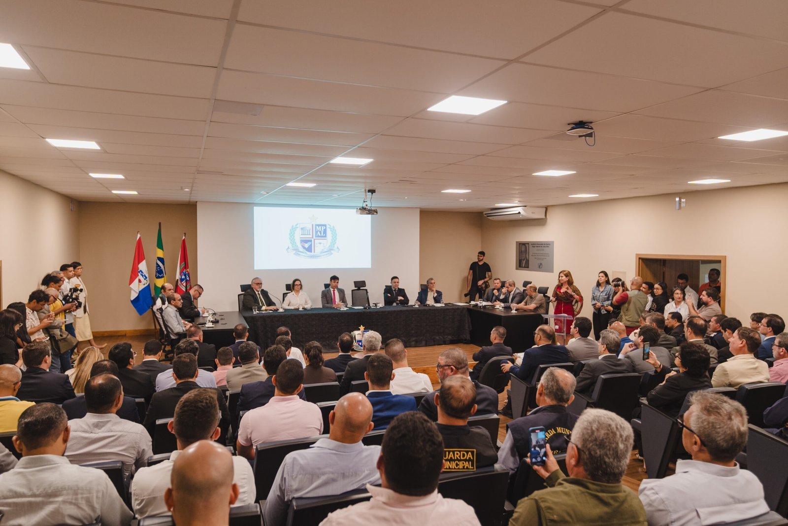 Preocupados em regularizar suas guardas municipais e oferecer um serviço de qualidade à população, prefeitos, procuradores municipais e coordenadores das corporações participaram, na manhã desta segunda-feira (22), da reunião conjunta da Associação dos Municípios Alagoanos (AMA) e do Ministério Público Estadual (MPE/AL). O Seminário do Programa de Regularização de Atuação das Guardas Municipais no Estado de Alagoas aconteceu no auditório do MPE.