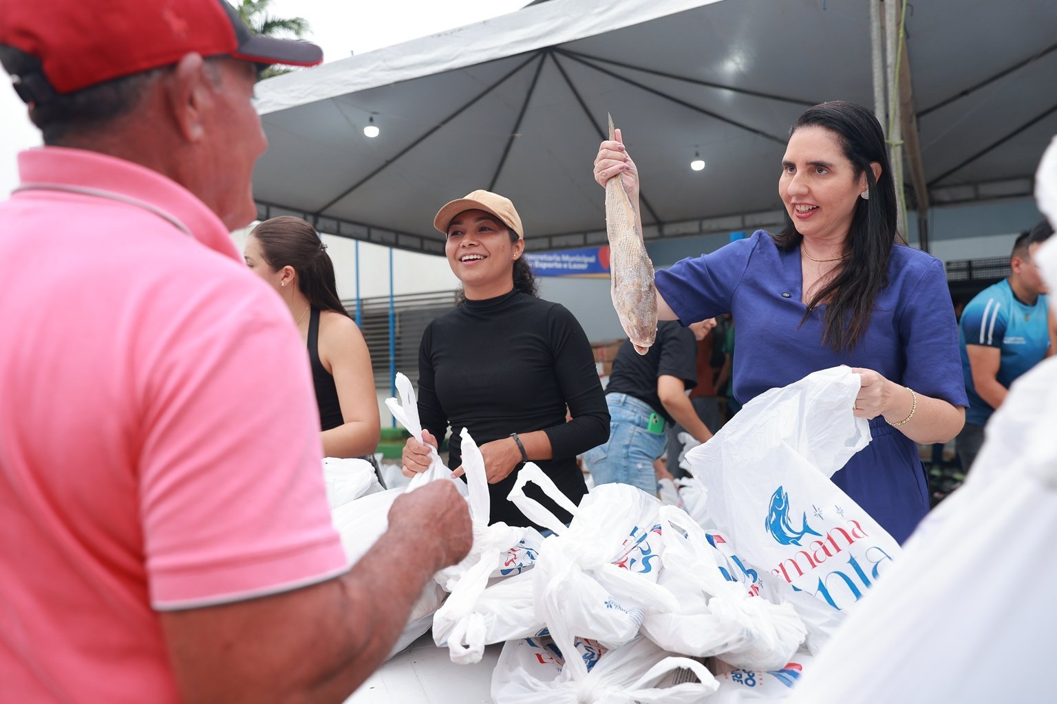 A iniciativa contempla a distribuição de 15 mil unidades de suco de uva, 15 mil unidades de leite de coco, além de 15 toneladas de arroz e 60 mil quilos de peixe, garantindo alimento na mesa da população durante a Semana Santa, um dos períodos mais simbólicos para as famílias.