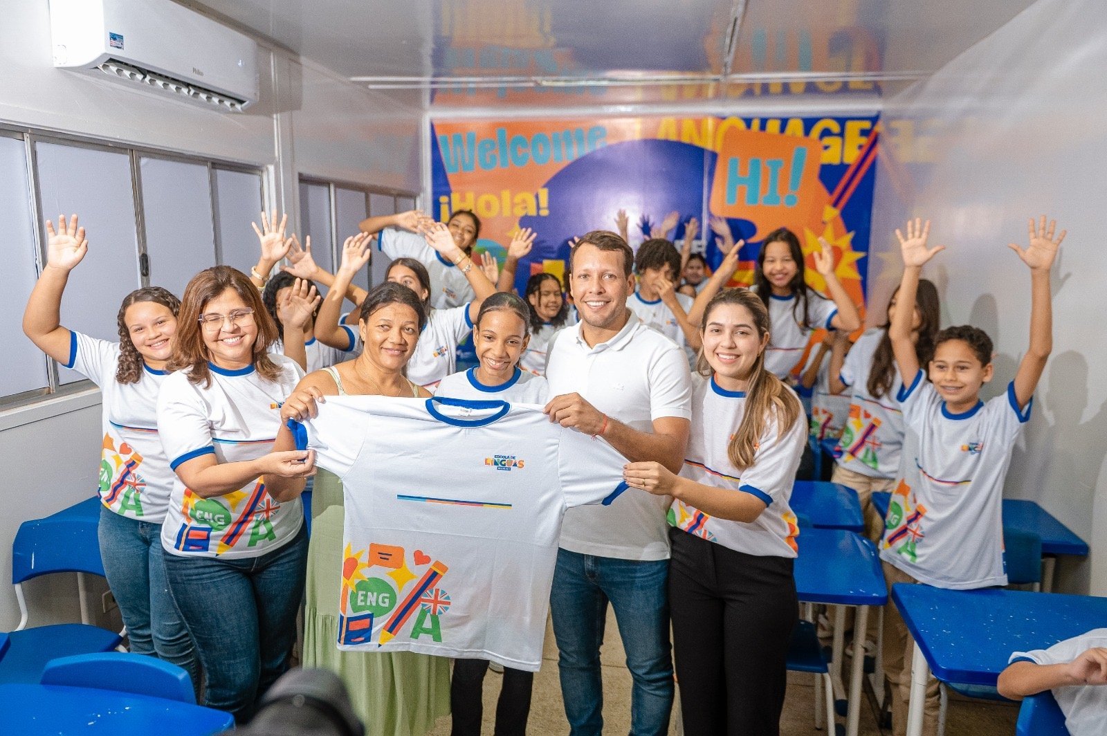 O evento contou com a presença do vice-prefeito Deivinho Vasconcelos, da primeira-dama Millena Aguiar, da secretária Soraya Calheiros, além de educadores e membros do corpo pedagógico da Escola de Línguas.