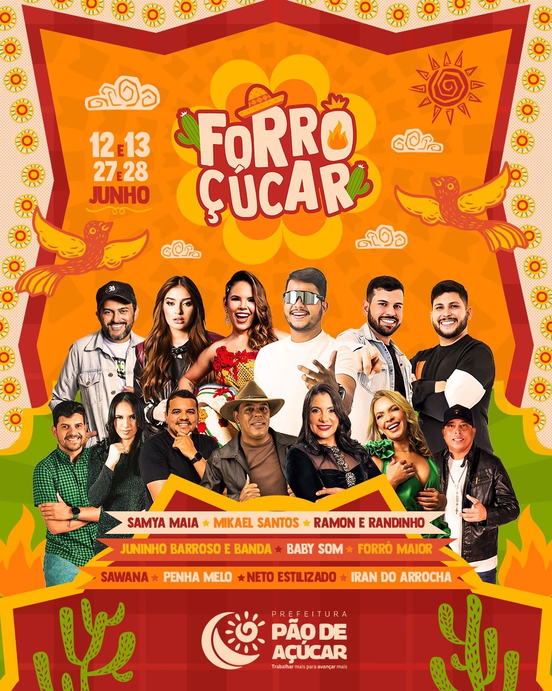 Este ano, o Forroçúcar contará com grandes atrações musicais, como Samya Maia, Mikael Santos, Baby Som, Ramon & Randinho, Zé Neto além de Forró Maior, Juninho Barroso, Neto Estilizado, Iran do Arrocha, Sawana Show e Penha Melo. A festa promete animar o público com muito xote, baião e arrasta-pé.