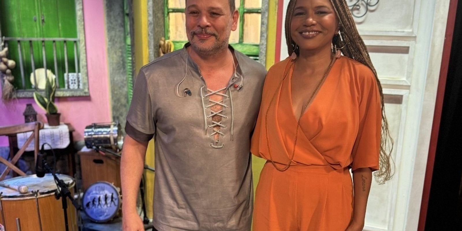 O palco para conversas embaladas por hits é um cenário colorido que evoca uma praça na Gamboa, bairro histórico da zona portuária da capital carioca. A presença de plateia é outro destaque da atração.