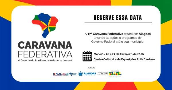 A Secretaria de Estado da Cultura e Economia Criativa de Alagoas (Secult) está mobilizando gestores municipais, fazedores de cultura e representantes da sociedade civil para participarem da 16ª edição da Caravana Federativa do Governo Federal, que será realizada no Centro Cultural e de Exposições Ruth Cardoso, em Maceió, nos dias 26 e 27 de fevereiro.