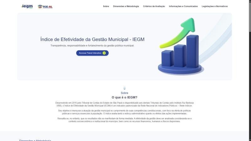 O Tribunal de Contas do Estado de Alagoas (TCE/AL) lançou o novo site do Índice de Efetividade da Gestão Municipal (IEGM), uma plataforma moderna e acessível que apresenta informações completas sobre esse índice, como sua metodologia, dimensões avaliadas e os resultados do IEGM 2024, referentes ao exercício de 2023. O grande destaque do portal é o inovador Painel Interativo de Business Intelligence, projetado para oferecer uma análise detalhada e visual dos dados, promovendo transparência e facilitando o acesso às informações sobre a gestão dos municípios alagoanos.