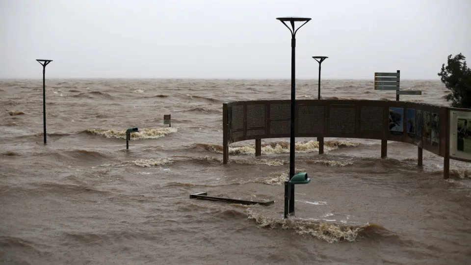 Em Uruguaiana, houve a queda do muro de uma escola e alagamentos pontuais.