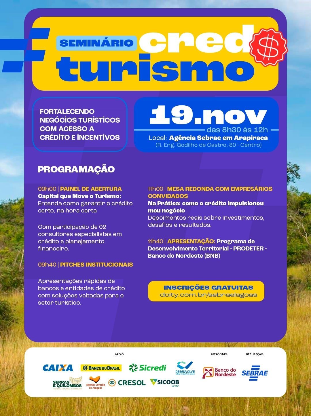 🔗 Inscreva-se gratuitamente: doity.com.br/seminario-cred-turismo-arapiraca