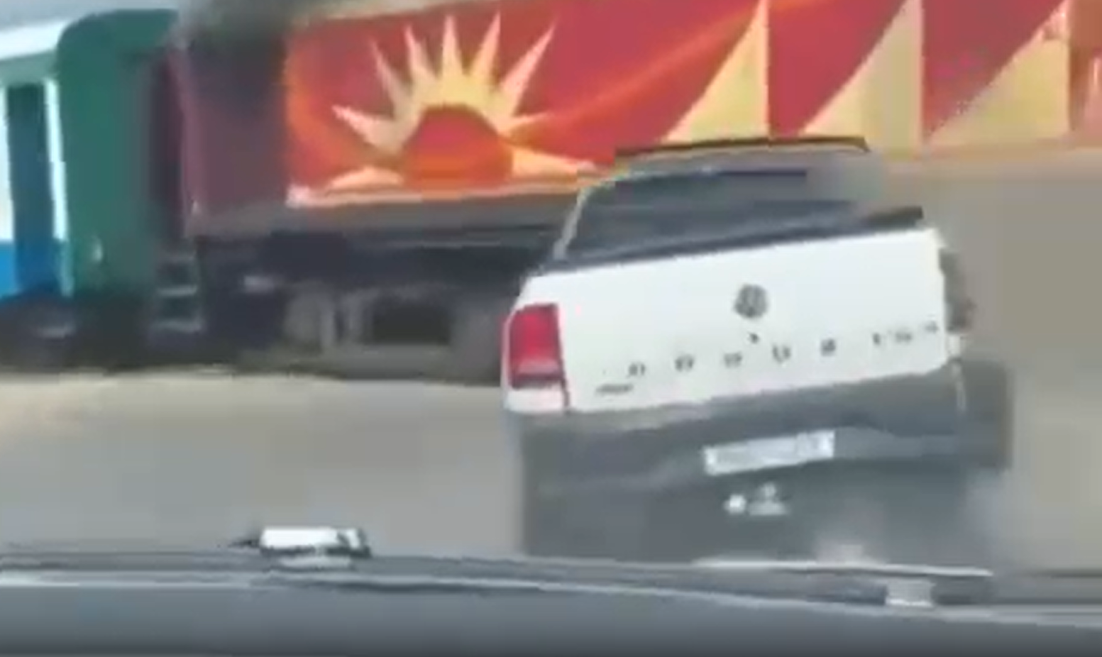 No registro, é possível perceber que o trem não conseguiu parar a tempo, atingindo a lateral do carro e arremessando-o a alguns metros de distância.