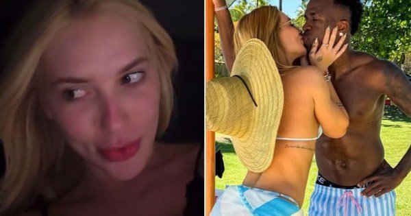 Virginia Fonseca, de 26 anos de idade, que está em Madri curtindo os últimos dias com o namorado, o jogador de futebol Vini Jr, de 25 anos, craque que joga pela Seleção Brasileira e pelo Real Madrid, viralizou na web, na madrugada desta sexta-feira (3), por conta de um vídeo em que está se despedindo dos fãs e pronta pra dormir. No registro, Virginia está falando sobre o fuso horário de cinco horas entre Brasil e a cidade espanhola. “Galera, estou indo dormir. O que que acontece? Agora a diferença de horário está cinco horas a mais do que no Brasil. Então, agora no Brasil está muito cedo. Só que aqui já tá muito tarde. Mas, enfim, eu quero acordar cedo e…”, diz ela, que olha pro lado direito e dá um sorrisinho.”E fazer muita coisa. Quero treinar, quero tipo sair, quero tipo fazer várias coisas amanhã [risos]. Acompanhem aí”, diz ela, que começa a rir ainda mais no fim do vídeo. Na web, internautas criaram teorias de que a presença de Vini Jr. ao lado da amada foi o que teria arrancado as risadas da influenciadora e empresária.”Agora vai”, brincou um, com uma imagem feita por IA mostrando Virginia e Vini com uma filha do casal. “A internet já decidiu: Vini Jr. estava ali, sem roupa, dando oi pros Stories kkkkk”, apostou outro. “Vini Jr. olhando pra ela totalmente pelado”, escreveu um terceiro.”Vini pronto pro bote”, “Vini peladinho kkk”, “hahaha. Vini Jr. ali no escuro”, “ela viu uma coisa muito obscena kkk”, “casal Viniginia é fogo”, “pela risadinha ela não estava indo dormir, não…”, “essa olhada dela…” e “Vini pronto pra prorrogação kkkkkkkkkk” também foram mensagens deixadas por internautas. Assista clicando abaixo: Virginia Fonseca dá sorrisinho e risada em vídeo, e web aposta em gracinhas de Vini Jr.Virginia FonsecaReprodução/InstagramInternautas apostam em motivo de sorrisinho sugestivo de Virginia em vídeoReprodução/InstagramVirginia FonsecaReprodução/InstagramInternautas apostam em motivo de sorrisinho sugestivo de Virginia em vídeoReprodução/InstagramVirginia FonsecaReprodução/InstagramInternautas apostam em motivo de sorrisinho sugestivo de Virginia em vídeoReprodução/InstagramVirginia FonsecaReprodução/InstagramInternautas apostam em motivo de sorrisinho sugestivo de Virginia em vídeoReprodução/InstagramInternautas apostam em motivo de sorrisinho sugestivo de Virginia em vídeoReprodução/InstagramInternautas apostam em motivo de sorrisinho sugestivo de Virginia em vídeoReprodução/InstagramInternautas apostam em motivo de sorrisinho sugestivo de Virginia em vídeoReprodução/InstagramInternautas apostam em motivo de sorrisinho sugestivo de Virginia em vídeoReprodução/InstagramVirginia Fonseca e Vini JrReprodução/InstagramVirginia Fonseca e Vini JrReprodução/InstagramVirginia Fonseca e Vini JrReprodução/InstagramVirginia Fonseca e Vini JrReprodução/InstagramVirginia Fonseca e Vini JrReprodução/Instagram