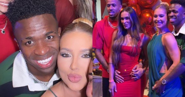 Virginia Fonseca, de 26 anos de idade, e Vini Jr., de 25 anos, posaram juntos durante a celebração de Natal organizada pela influenciadora na noite desta terça-feira (23), em Goiânia. O evento marca o primeiro Natal do casal desde que assumiram o relacionamento publicamente, em outubro.No evento, que foi proibido o uso de celulares, contou ainda com a presença de Eder Militão, colega de time de Vini, e Taina Militão. A cantora Ludmilla e a esposa, Brunna Gonçalves, também marcaram presença.O jogador do Real Madrid desembarcou na cidade para passar a data ao lado da namorada e da família dela. Antes de seguir para Goiânia, o casal chegou ao Brasil após uma passagem relâmpago por Dubai e fez uma breve parada no Rio de Janeiro.Batizada de “Natal das Marias e do José”, a comemoração foi organizada de forma antecipada e faz referência aos filhos de Virginia — Maria Alice, de 4 anos, Maria Flor, de 3, e José Leonardo, de 1. As crianças passarão a véspera e o dia de Natal com o pai, Zé Felipe, que estará acompanhado da namorada, Ana Castela.Após as festas, Virginia e os filhos viajarão para Madri, onde passarão o Réveillon ao lado de Vini Jr., que precisa se reapresentar ao Real Madrid já no dia 1º de janeiro.Virginia Fonseca e Vini Jr. posam juntos com Ludmilla, Brunna Gonçalves, Carlinhos MaiaReprodução/InstagramVirginia Fonseca e Vini Jr. posam juntos em evento de Natal em GoiâniaReprodução/InstagramVirginia Fonseca e Vini Jr. posam juntos em evento de Natal em GoiâniaReprodução/InstagramVirginia Fonseca e Vini Jr. com Eder Militão e Tainá MilitãoVirginia Fonseca e Vini Jr. com amigosReprodução/Instagram